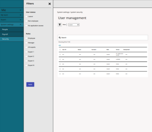 User management is an application managed by administrators such as HR, managers, the service team, or the IT team. This application enables the privilege to configure user ID generation, manage security, and create user details.