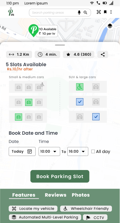 The Parkmate Car Parking App prototype streamlines the parking experience with real-time spot availability, GPS navigation, and secure in-app payments. Designed with a user-first approach, the app ensures easy and efficient parking management through a clean, intuitive interface.